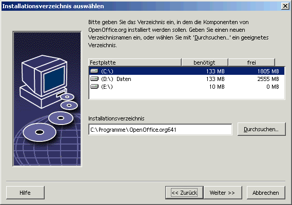 OpenOffice.org wird auf einem Einzelrechner für mehrere Benutzer oder auf einem Netzwerkrechner für die gemeinsame Benutzung installiert.