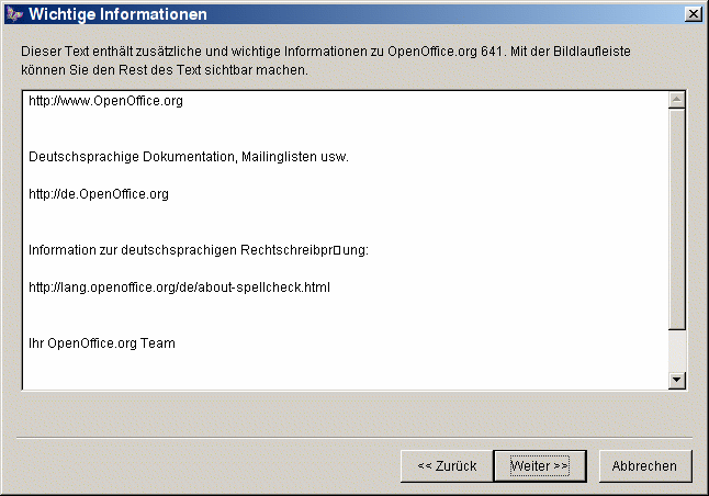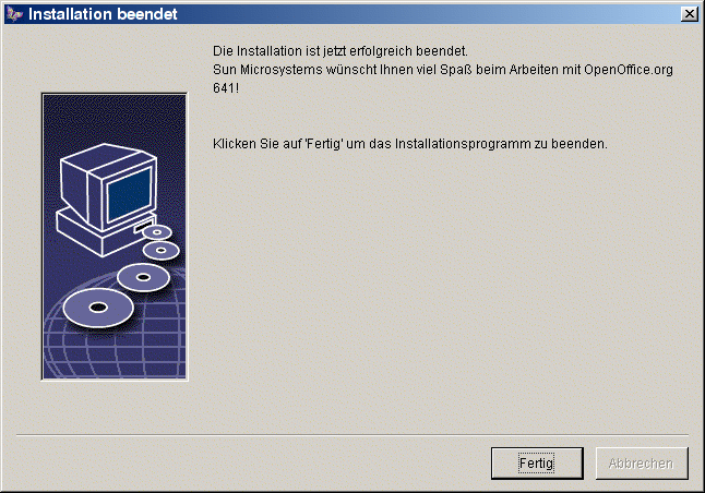 Nach diesem Installationsschritt muss für jeden Benutzer eine Workstation-Installation durchgeführt werden, um ein benutzbares OpenOffice.org zu erhalten. Die Workstation-Installation wird automatisch gestartet, wenn ein Benutzer zum ersten Mal OpenOffice.org zu starten versucht.